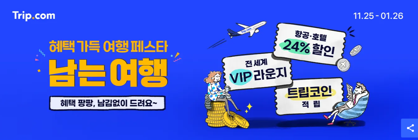 이 외에도 트립닷컴은 항공 마일리지와 트립코인을 동시에 적립할 수 있는 프로그램을 운영하고 있어, 여행자들이 더 많은 혜택을 누릴 수 있습니다.